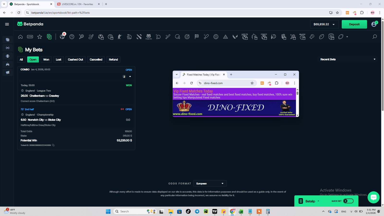Next Fixed Match Date: 11 January 2026 ( Sunday ) Total odds is around 120-140.00 ( 2 games )