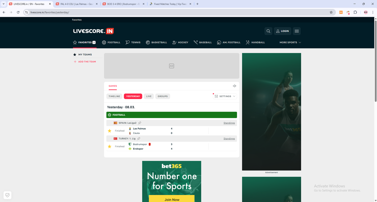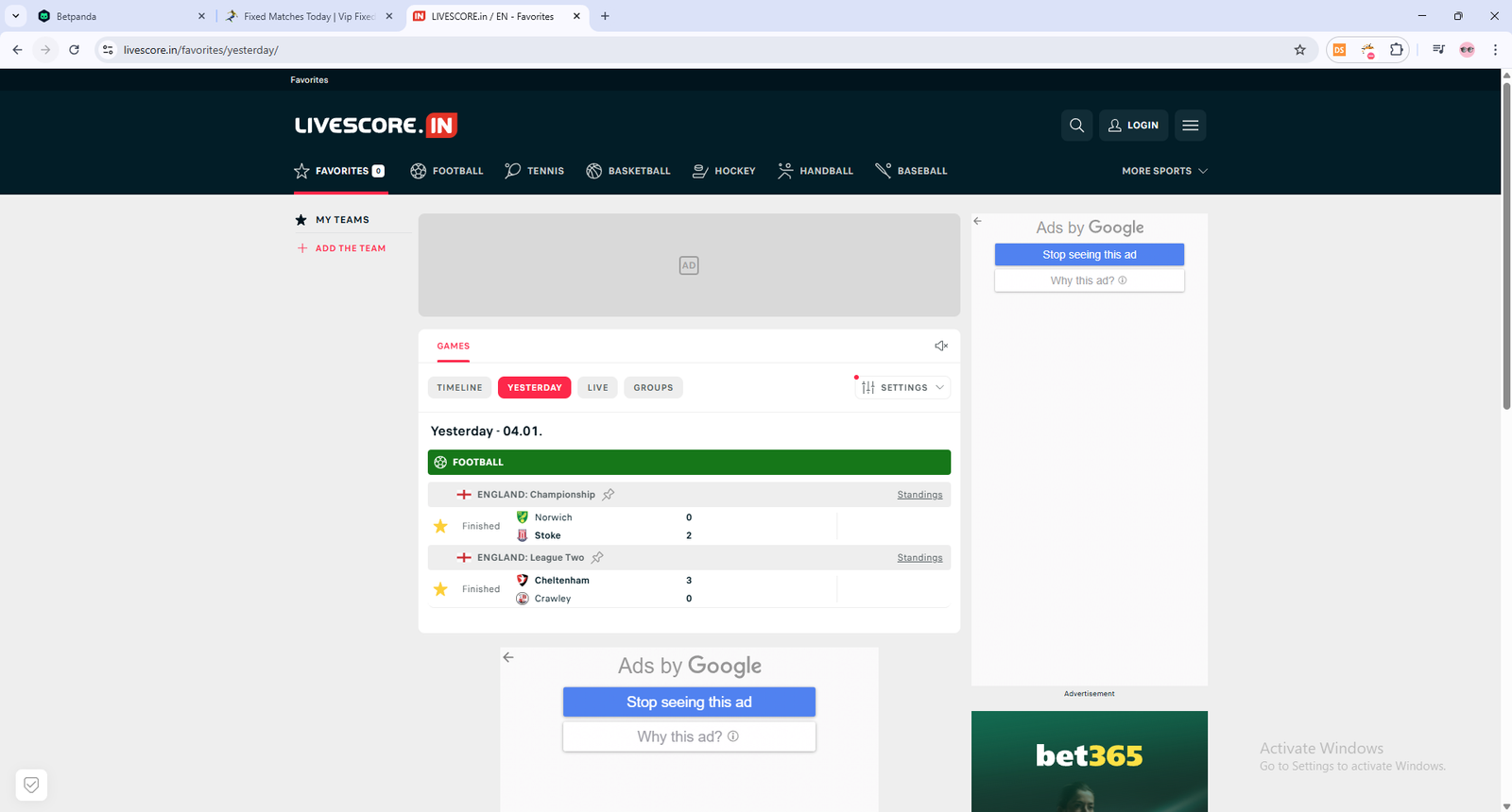 Please check our photo from bet365 on mobile