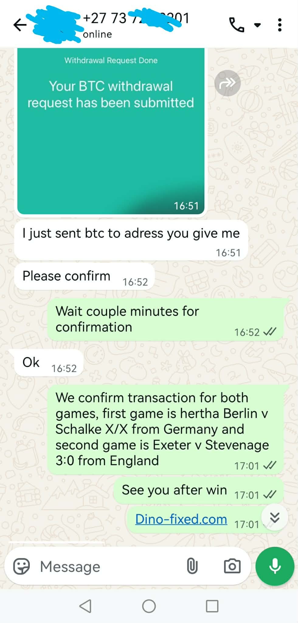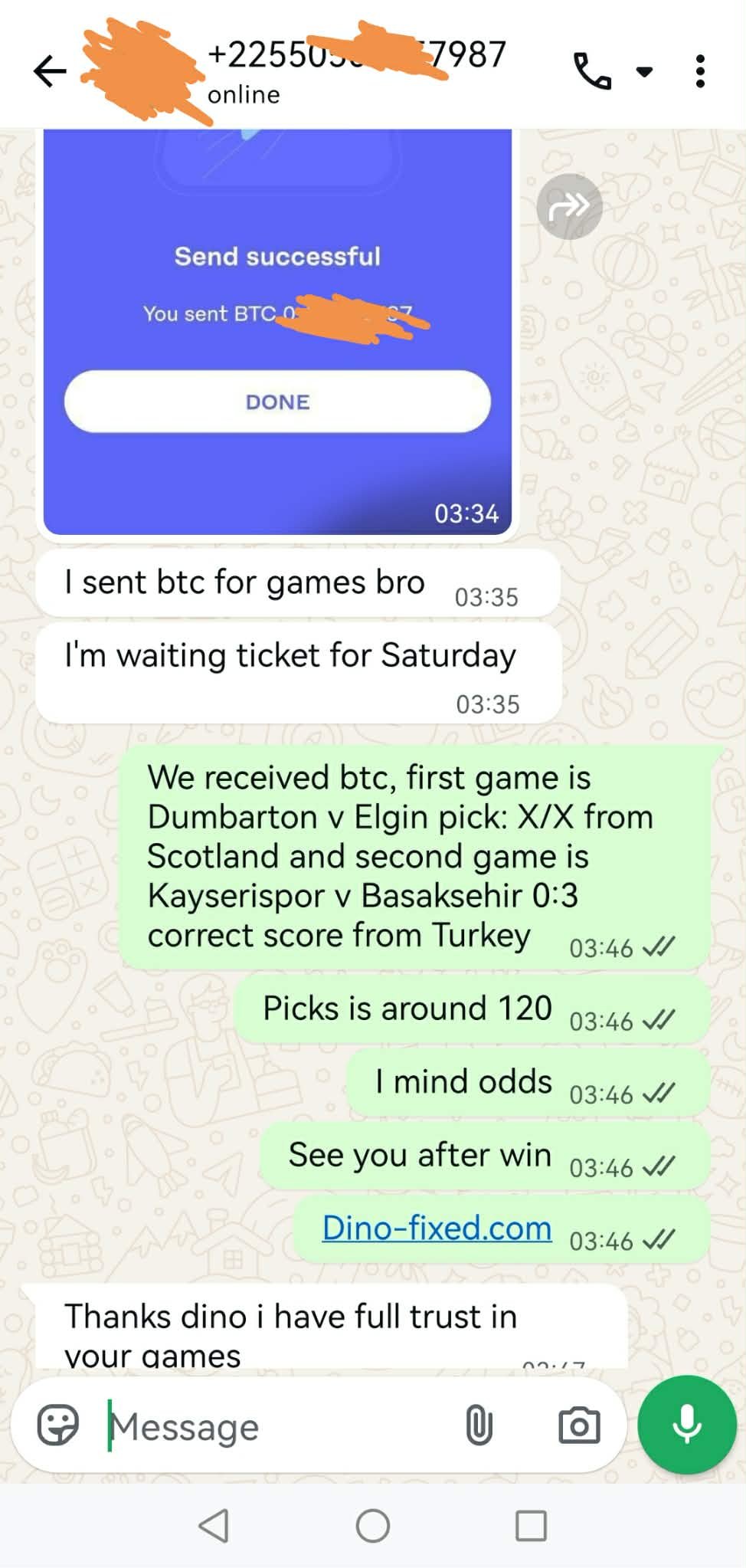 Here is Conversation on WhatsApp with new client who buy our fixed match